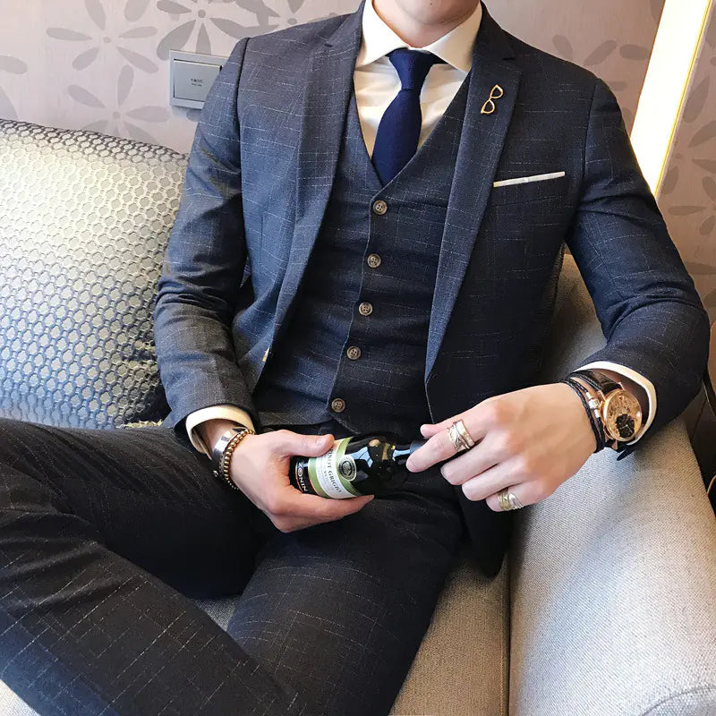 Korean Style Slim Fit Men's Suit Set for Groom